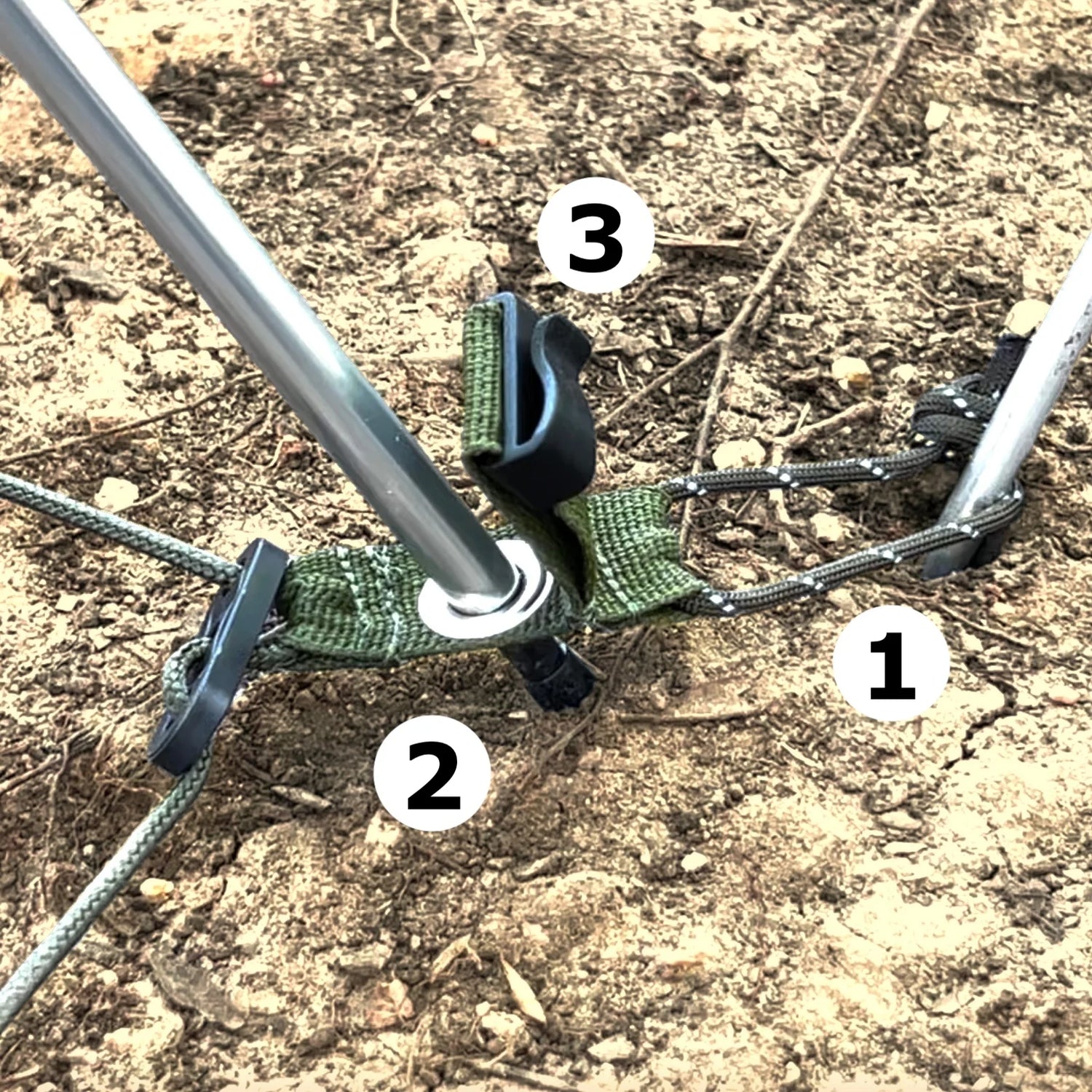 - Reflective paracord tie-downs hold corners in place and are visible in the dark.
